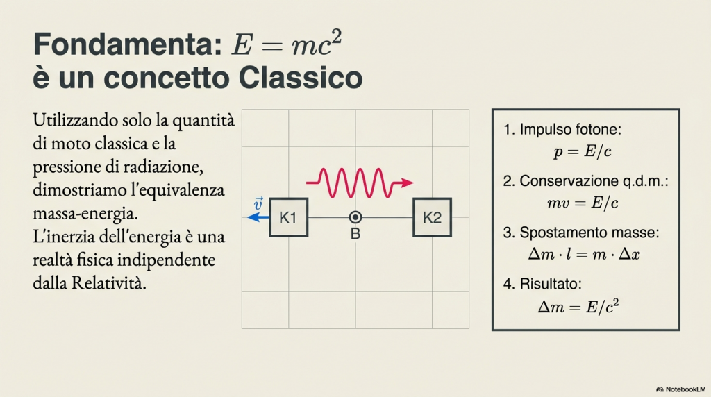 Dialogo sulla derivazione di E = mc² senza l’uso della Relatività.